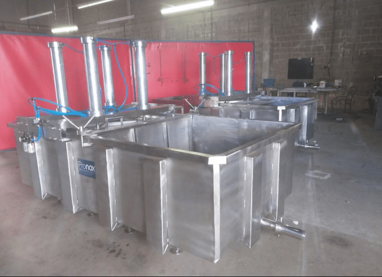 Equipamento para drenagem e prensagem. Feito em inox, รฉ ideal para processos alimentรญcios industriais.